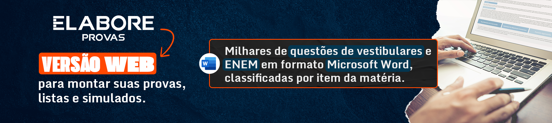 O Elabore Provas é um moderno Sistema WEB que permite visualizar, filtrar, selecionar, e gerar provas com as milhares de questões classificadas das principais matérias e atualizadas semestralmente.